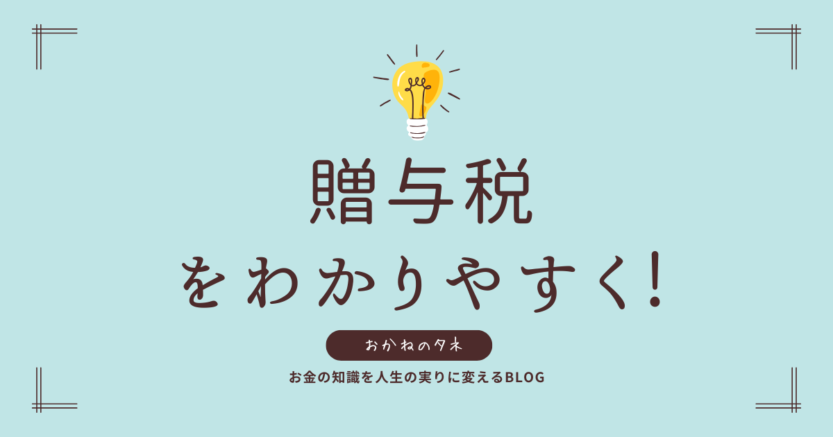 贈与税とは、個人から財産をもらったときに受け取った人にかかる税金のことです。